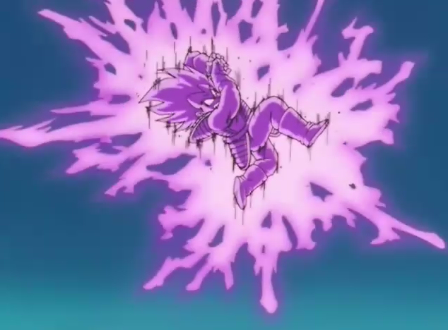 Afin d’en finir avec Boo, Vegeta libère toute son énergie. Elle se manifeste par une boule d’énergie dont la source est l’ensemble du corps de Vegera. Puis elle se diffuse aux alentours en détruisant l’ensemble du paysage.